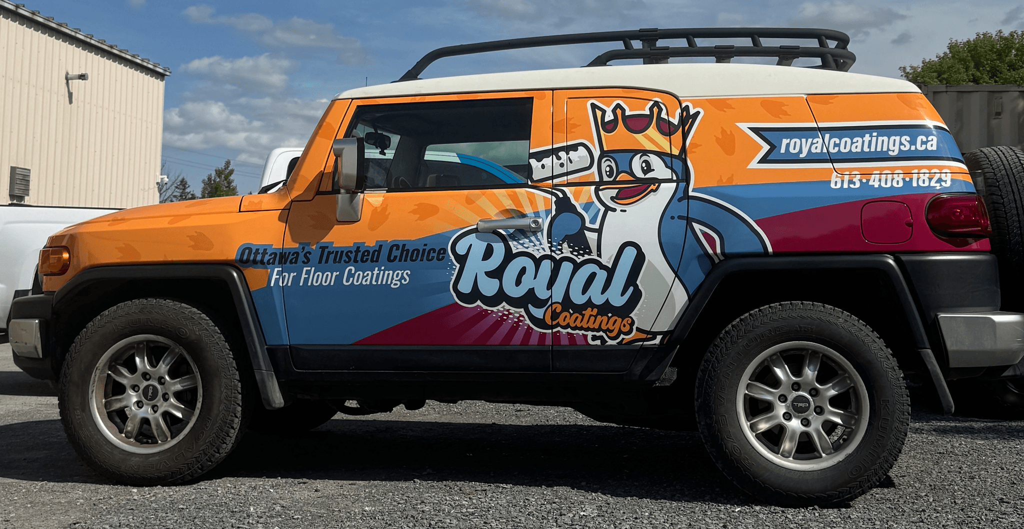 Printed wrap covering the whole vehicle excluding the roof